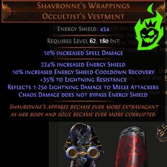 Another interesting aspect is the 20% of Elemental Damage from Hits Taken as Chaos Damage which makes this item one of the best defensive options for exiles who want to negate some of the elemental damage. It also has increased Energy Shield, faster recharge rate and faster start of ES recharge to offset the downtime between taking damage and regaining energy. Those who want to minimize ailments or mitigate the burst damage from bosses in endgame encounters will love this approach.