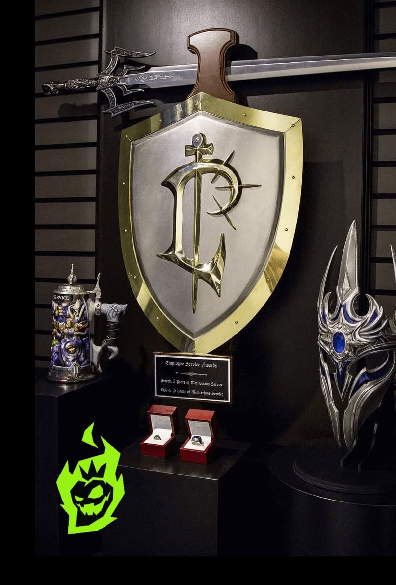- Sword and Shield Set: Wield a fancy sword and shield combo to reflect the complex workmanship of Blizzard’s service medals.