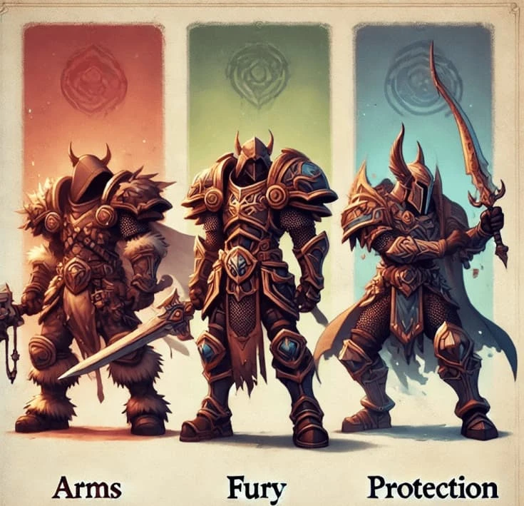 Warriors can choose from 3 unique specs: Fury, Arms, and Protection. While Fury and Arms both focus on dealing damage, they approach battle in very different ways, with unique strategies, rotations, and where they put their strength.