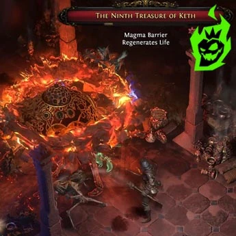 The Ninth Treasure of Keth is an optional but profitable boss in The Lost City. It’s a big chest-like entity that throws projectiles and summons a constant stream of Adorned Beetles. Group strategies involve one or two exiles focusing on the boss while others handle the beetle swarms. Solo exiles should have a strong AoE skill to avoid being overwhelmed. This boss has high item rarity so players farm it for gear. Here is a list of tips for The Ninth Treasure: