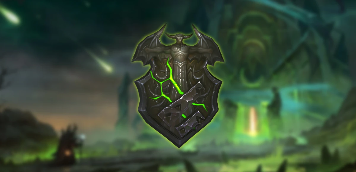 Which Classes Can Use ItBulwark of Mannoroth is a massive demonic shield covered in black metal plates and glowing green Fel cracks. Its surface shows the face of a fallen pit lord, forged into the shield’s frame, giving it a brutal Legion-era look.