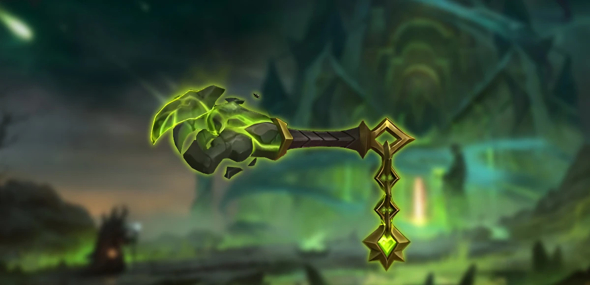Which Classes Can Use ItSinister Felwand is a short, curved wand with a broken rock core wrapped in bright green Fel energy. One side ends in a claw-like crack, while the bottom has a gold chain and glowing gem. It looks unstable, dangerous, and fits any chaotic caster outfit.